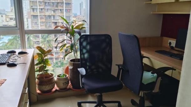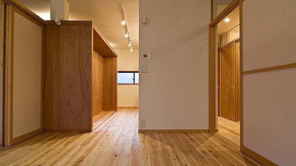 This apartment with nice shades of blue and a beautiful bathroom will help you to relax after work.